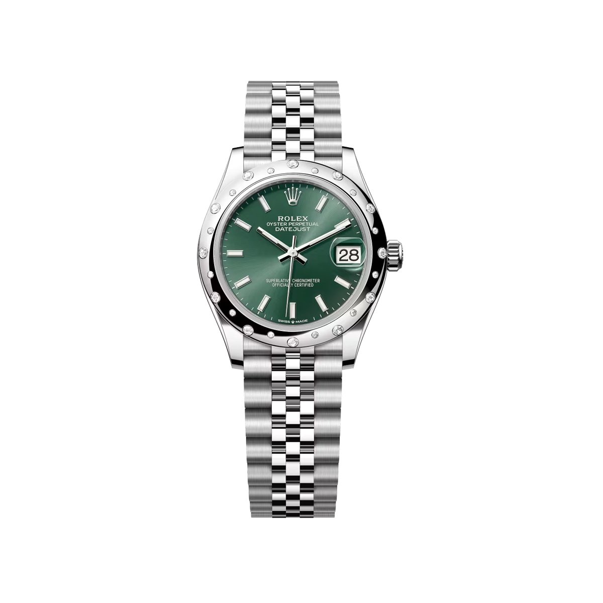 Datejust 31mm Steel & White gold Mint Green Dial Diamond bezel Jubilee Bracelet